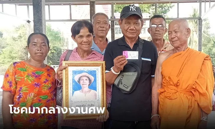 ท่ามกลางความโศกเศร้า ยังมีเรื่องให้ยิ้มได้ ถูกรางวัลที่ 1 ผู้ใช้เฟซบุ๊กชื่อ Premvadee Sukkaw ได้โพสต์ภาพ ข่าวหวยงวดนี้ แสดงความยินดีกับคุณลุง ข่าวถูกรางวัลที่1กลางงานศพ สมาชิกในครอบครัว ที่โชคดีสุดๆ ดวงเฮงถูกลอตเตอรี่รางวัลที่ 1 หมายเลข 025873 จำนวน 1 ใบ รับทรัพย์ 6 ล้านบาท ข่าวคนถูกรางวัลที่ 1 แต่ที่ปังกว่านั้น คือภาพถ่ายยินดีเศรษฐีใหม่ ถ่ายในงานศพ อาจาร์ไก่แจกโชค ของญาติ ซึ่งจัดพิธีอยู่ที่ อ.น้ำยืน จ.อุบลราชธานี ซึ่งเชื่อได้ว่าได้โชคมา เสือตกถัง จากผู้วายชนม์ เพราะเศรษฐีใหม่คนนี้ เอาภาพถ่ายหน้าศพของญาติ มายืนถือถ่าย หวยดี เพื่อร่วมยินดีในครั้งนี้ด้วย