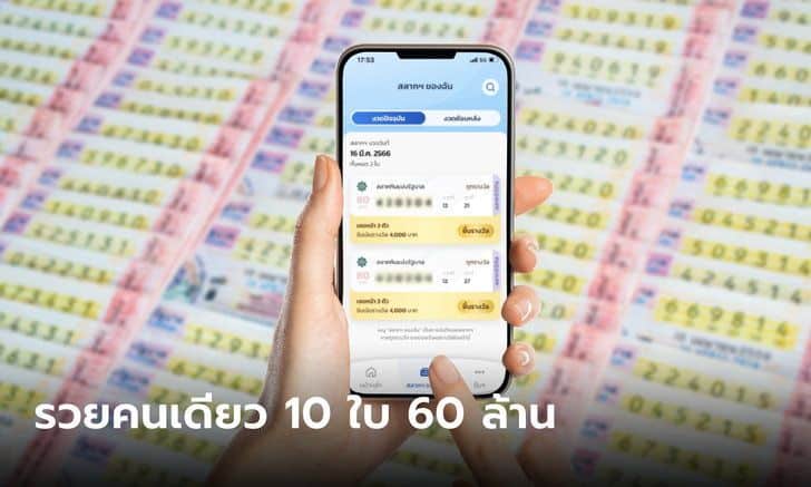 รางวัลที่1สลากดิจิทัล 16-3-66 “สลากดิจิทัล” แอปฯ เป๋าตังค์ มีคนถูกรางวัลที่ 1 คนเดียว 10 ใบ กลายเป็นเศรษฐีใหม่ 60 ล้าน อีกรายรับ 30 ล้าน
