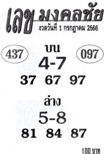 หวยเลขมงคลชัย 1-7-66 แนวทางหวย สลากกินแบ่งรัฐบาลไทย ฟรี !
