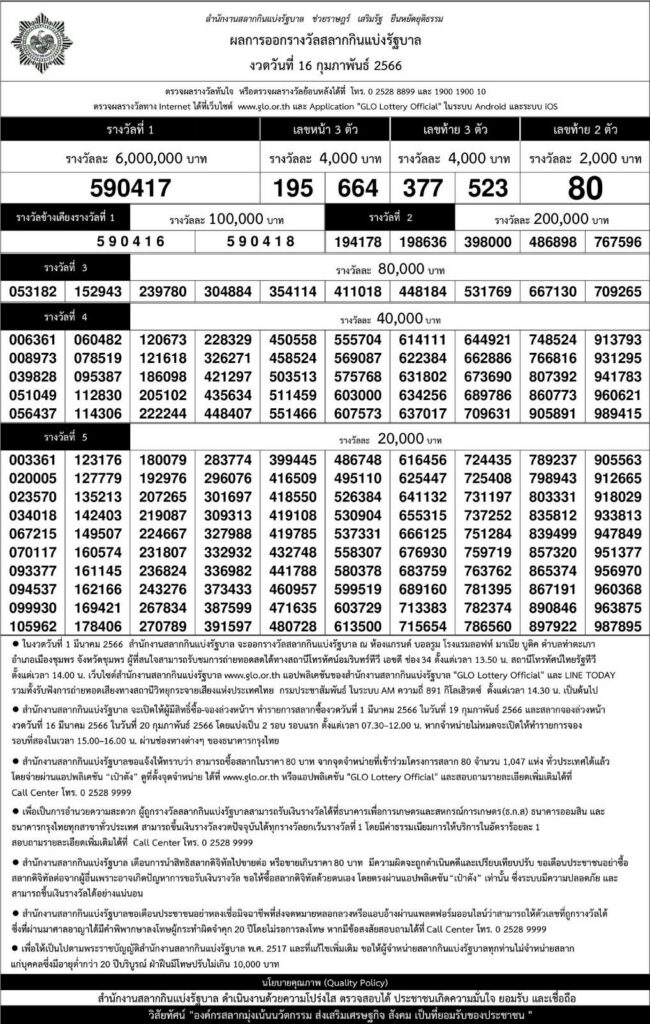 ใบตรวจหวย 16-2-66 ตรวจผลรางวัล สลากกินแบ่งรัฐบาลงวดนี้ ประจำวันที่ ใบตรวจหวย 16 กุมภาพันธ์ 2566 คลิก