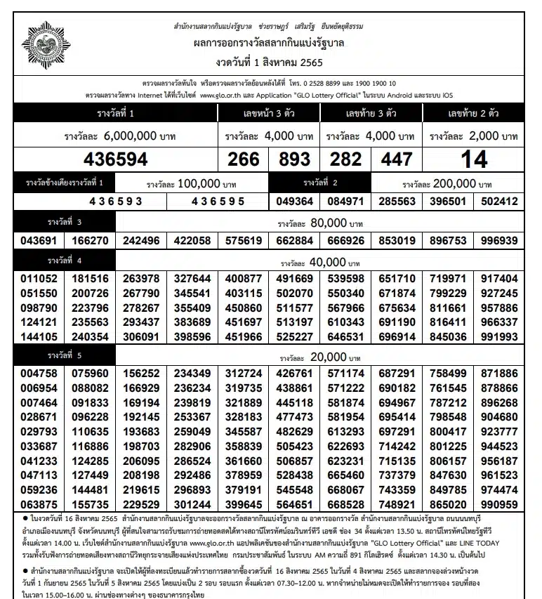 ใบตรวจหวย1-08-2565 ตรวจผลรางวัล สลากกินแบ่งรัฐบาล งวด ประจำวันที่ 1 สิงหาคม 2565