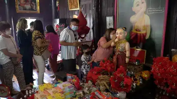 ข่าวหวย ไอ้ส้มฉุน1/8/65 คอหวยมาตามแรงศรัทธา แห่ขอโชค “ไอ้ส้มฉุน” วัดทรงเสวย ด้านคนดวงดีมาแก้บน ใจดีเผยแนวทาง “เลขเด็ด” ปลายประทัด หวังนำไปลุ้นโชคงวดนี้