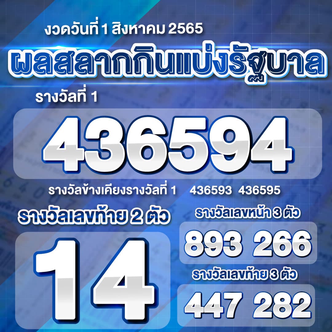 ตรวจหวย1-08-2565  ตรวจสลาก ตรวจรางวัล ท่านสามารถเช็ครางวัลสลากกินแบ่งรัฐบาลไทยได้ที่นี่