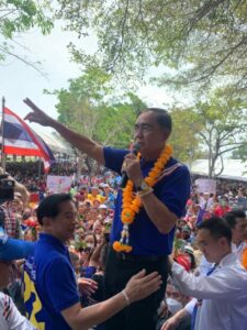 รถลุงตู่ให้โชค 2-5-66 “ลุงตู่” หาเสียงภาคใต้วันที่สองลุยสงขลา ขึ้นรถแห่รอบเมือง อ้อนให้เลือกพรรครวมไทยสร้างชาติเป็นภาษาใต้ ก่อนแวะจิบชา-ติ่มซำ ชาวบ้านไม่พลาดส่องเลขทะเบียนรถ