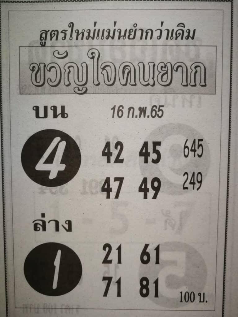 หวยขวัญใจคนยาก 17/2/65
