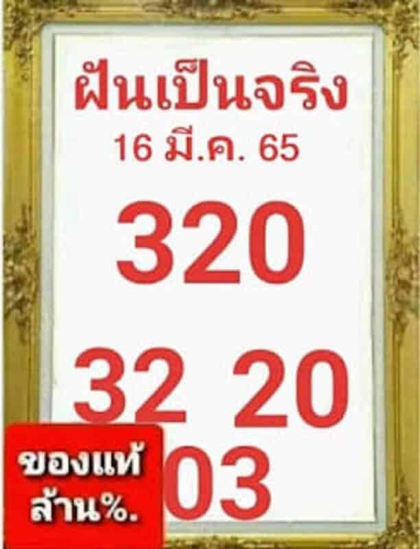 หวยฝันเป็นจริง 16/3/65