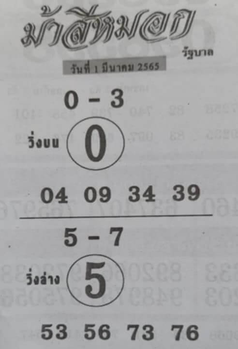 หวยม้าสีหมอก 1/3/65