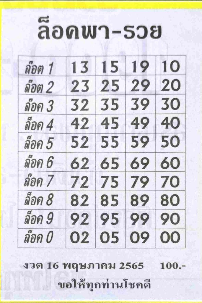 หวยล็อคพารวย 16/5/65