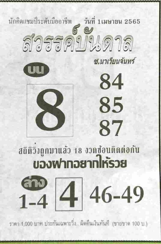 หวยสวรรค์บันดาล 16/4/65