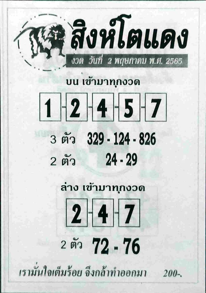 หวยสิงห์โตแดง 2/5/65