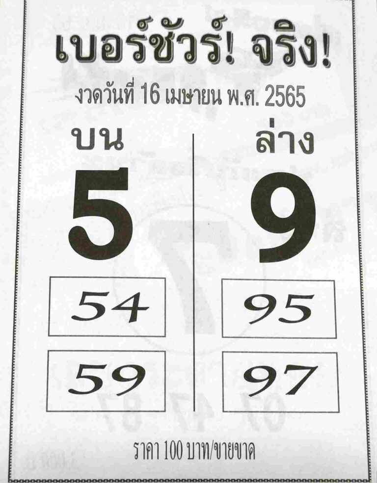 หวยเบอร์ชัวร์จริง 16/4/65
