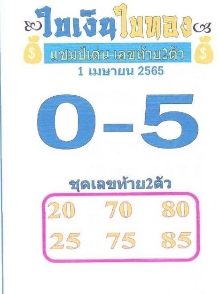 หวยใบเงินใบทอง 1/4/65