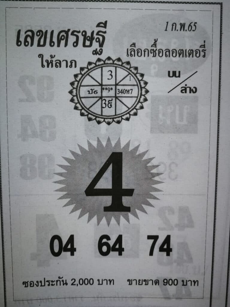 เลขเศรษฐี 1/2/65