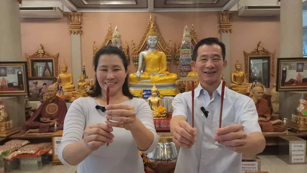 แก้บนพระเงินพระทอง 17-1-67 สองสามีภรรยาดวงเฮง พากันมาแก้บนพระเงินพระทอง ที่วัดสว่างฯ เชื่อช่วยให้ขายหอพักที่เชียงใหม่ได้ หลังประกาศขายมานาน ไม่มีคนสนใจ เสี่ยงเซียมซีขอโชคใหญ่ ได้ “เลขเด็ด” งวด 17 ม.ค.67